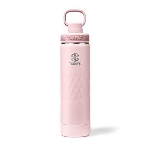 Takeya Sport 22 oz Triple-Insulated Stainless Steel Water Bottle, Spout Lid – Leakproof, Sweatproof, BPA-Free, Keeps Drinks Cold 36 Hrs, Hot 14 Hrs – Peony