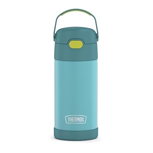 THERMOS FUNTAINER Water Bottle with Straw - 12 Ounce - Kids Stainless Steel Vacuum Insulated Water Bottle with Lid, Blue/Green